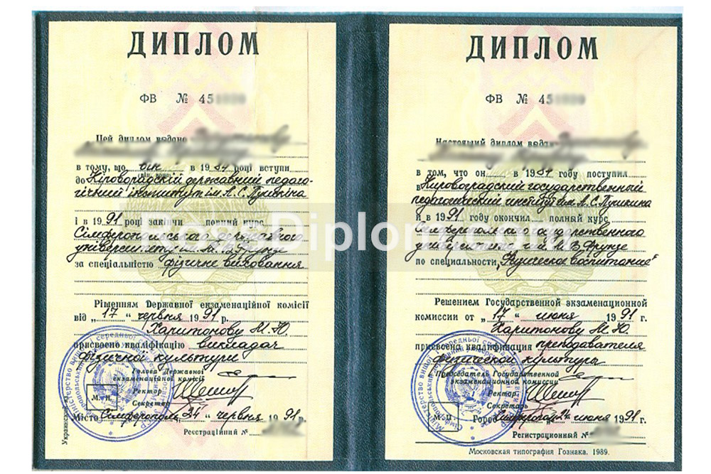 Мы можем сделать для Вас старый диплом СССР бывших Союзных Республик на двух языках. Если Вам нужен диплом Украины, Узбекистана, Грузии, Казахстана, Беларуси, Молдовы и других, присылайте образец, сделаем точную копию, но с Вашими данными! Примеры заполнения ниже. Кликните для увеличения.