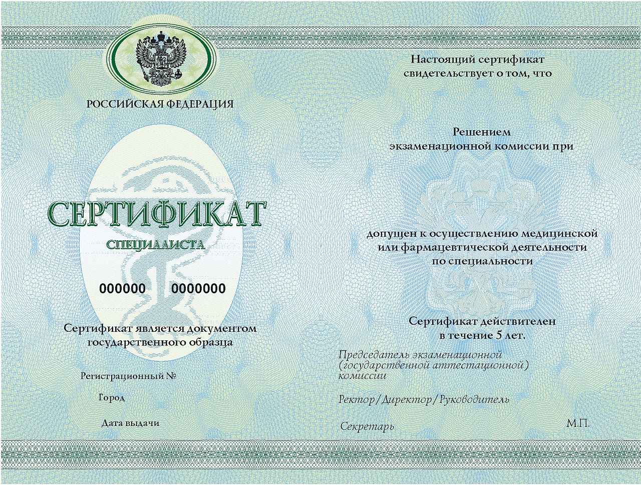 Сертификат специалиста – это подтверждение того, что медработник или фармацевт обладает необходимыми навыками и знаниями для выполнения профессиональной деятельности. Документ действителен всего 5 лет. Потом его требуется получать заново. Без него судмедэксперт, стоматолог, гинеколог, медицинская сестра, а также фармацевт, провизор и другой представитель медицинской профессии не может работать по специальности.